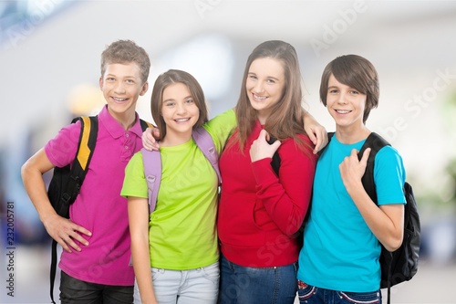 Friendly school children with backpacks concept