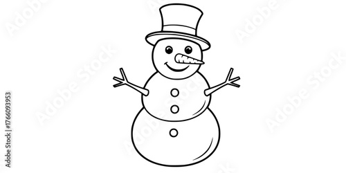 snowman, winter, cartoon, friendly, simple, outline, black-and-white, children, cold, festive