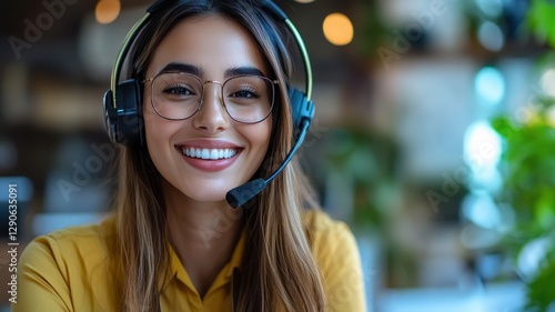 Friendly telemarketing representative with a headset, ready to assist customers with a smile and exceptional service.