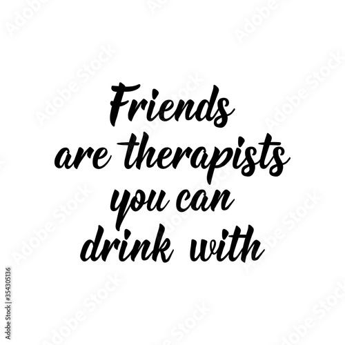 Friends are therapists you can drink with. Vector illustration. Lettering. Ink illustration.