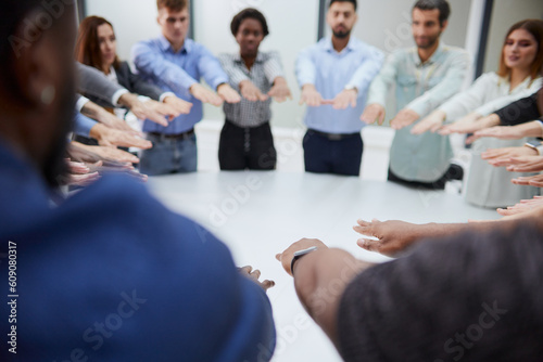 Friends exchanging the highfive in the office