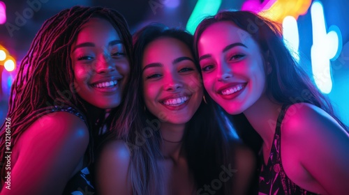 nightclub, neon, friends, head shot, nightlife, joy, carefree, vibrant, party, light, celebration, friendship, fun, portrait, energy, colours, socialising, atmosphere, youthful, dance, urban, excitement, happiness, moment, fashion, entertainment, smile, connection, leisure, music, lifestyle, enjoyment, thrill, diversity, intimacy, expression, gathering, camaraderie, flash, trend, dynamic, style, media, culture, creativity, adventure