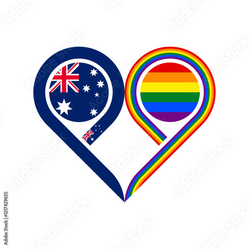 friendship concept. heart symbol icon of australia and rainbow flags. vector illustration isolated on white background