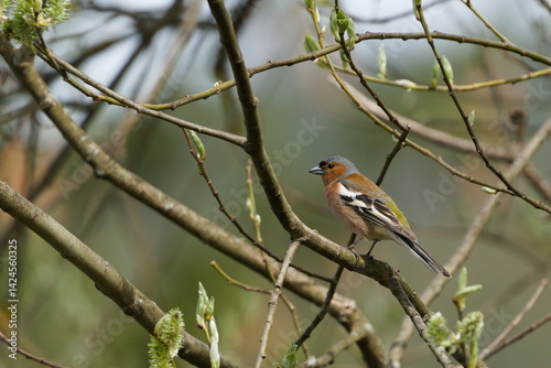 Fringilla coelebs aka Common Chaffinch perched on the tree branch. Common bird in Czech republic. Nature of Czech republic.
