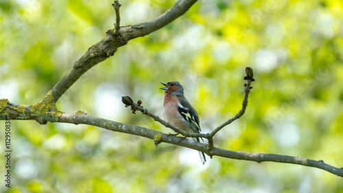 bird, finch, copy space, negative space, bokeh, wing, european, brown, wallpaper, birding, park, portrait, cute, season, closeup, outdoors, forest, songbird, beautiful, ornithology, colourful, wing, springtime, spring, nature, tree, male, sitting, 1, horizontal, background, colours, colours, white, yellow, green, singing, feather, tree branch, beak, wildlife, wilderness, wild, fauna, animal