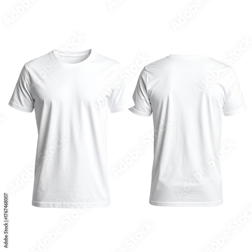 t-shirt, white, plain, front, back, view, apparel, clothing, cotton, fabric, textile, template, design, blank, empty, sleeve, collar, neck, round, casual attire, unisex, simple, basic, everyday, minimalist, fashion, style, wearable, garment, isolated, clean, pure, modern, neutral, summer, spring, hard-wearing, classic, comfortable, soft, smooth, ready, customize, product, texture, surface