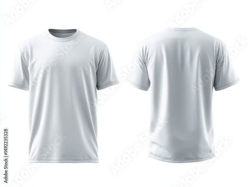 Front and back views of a white T-shirt template designed for apparel branding and customization. Perfect for showcasing designs or promoting merchandise