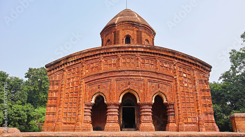 Front facade of Ram Chandraji's Temple, showcasing superb terracotta ornamentation, Brindavan Chandra's Math, Guptipara, Hooghly, West Bengal, India.