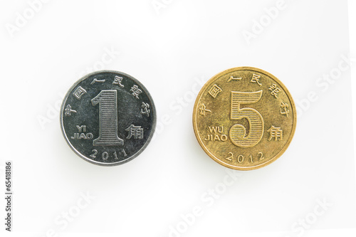 Front of Isolated Coin for 1 and 5 Jiao in Chaina