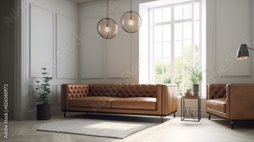 front view mock up room leather classic sofa with wall backdrop template interior room design background clean clear home space interior daylight,ai generate