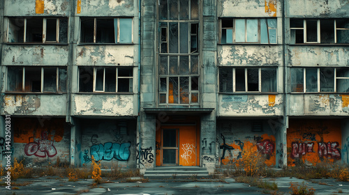 abandoned, building, decay, graffiti, urban, derelict, broken, window, concrete, structure, empty, vandalism, destroyed, entrance, facades, peeling, paint, shattered, glasses, grunge, eerie, desolate, ruined, weed, neglected, scarey, skittish, worn, old, cracked, mess, bleak, soviet, urbanism, isolation, deserted, gloomy, horror, architecture, ruin, mystery, overgrown