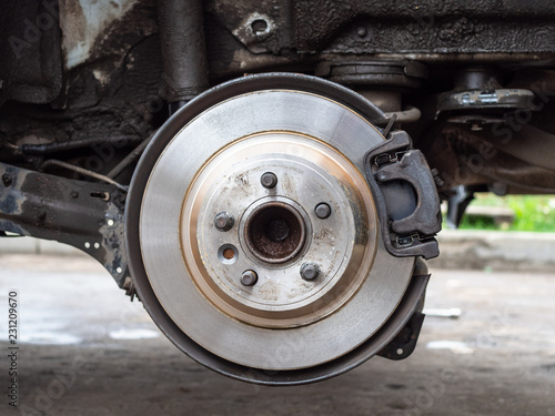 brake, brake, disc, pad, repair, shop, service, workshop, tool, equipment, detail, part, outdoors, wheel, car, auto, substitution, changing, vehicle, automobile, maintenance, change, replace, disc-brake, inspection, drum, front, view, new, old, used, friction, surface, rotor, closeup