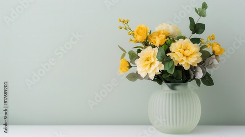 Frosted glass urn, yellow floral centerpiece, flat design illustration