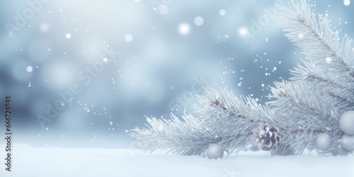 Frosty Christmas Wonderland: Bokeh Lights on Snowy Spruce Branches