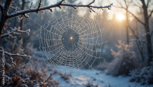 frosty, spider's web, glistening, morning light, delicate, intricate, nature, macro, cold, misty, branch, glacé, dew, winter, soft focus, icy, fragile, detailed, shimmering, subtile, beauty, suspended, closeup, crystalline, aethereal, elegant, natural, web, sunrise, symmetry, natural wonder