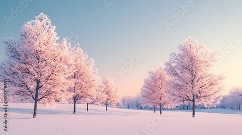 Frosty Winter Trees in a Snowy Landscape at Dawn