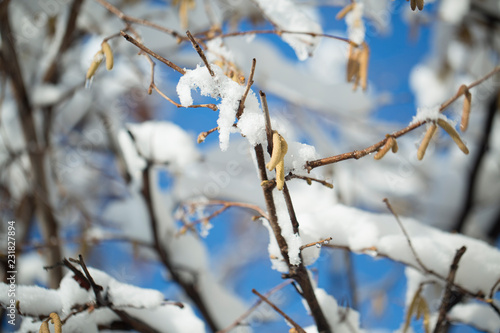 winter, snow, tree, nature, tree branch, cold, frost, white, ice, branch, season, spring, sky, glacé, plant, blue, tree, blossom, cherry, bush, flower, outdoors, frosty, freeze, hoar frost, burgeon, botany, brown, bud, chill, climate, seasonal, environment, environmental, glacial, grey, landscape, melt, morning