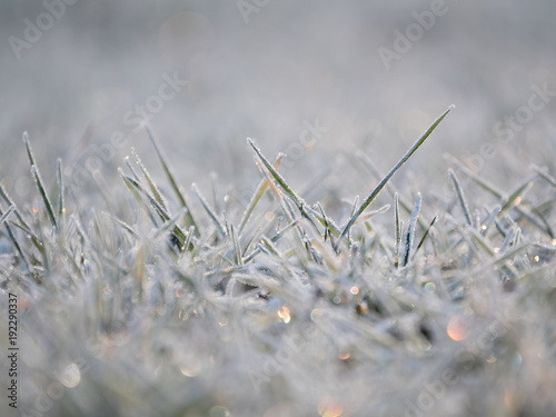 Frozen grass cold morning close up blur bokeh