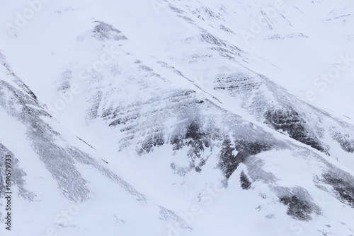 Frozen mountain side with interesting pattern, Svalbard, Norway