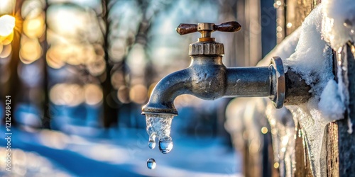 Frozen Outside Water Spigot with Dripping Water and Ice , ice, freezing, ice, freezing,spring,piping,snow,hose,drip,spout