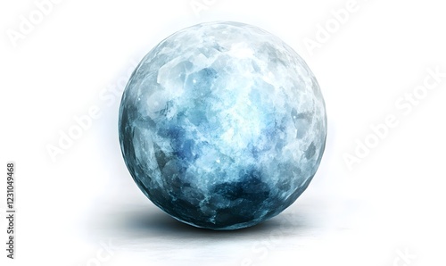 Frozen sphere, digital art, white background, icy texture, science fiction