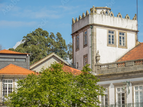 postage, portugal, river, bridge, house, balcony, window, church, tower, travel, cloud, spring, flower, roof