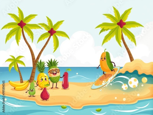 cartoon, tropical, fruit, island, fun, beach, summer, paradise, vacation