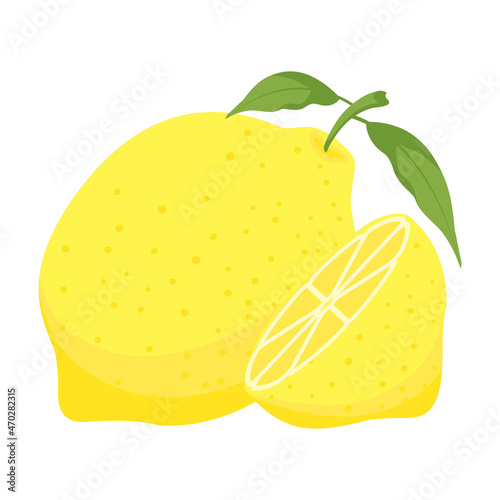 fruit, lemon, yellow, slice, cut, plant, food, cartoon, vector, illustration, isolated, object, image, stylish, design, cute