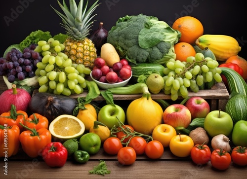 Fruits and vegetables on table. Healthy food