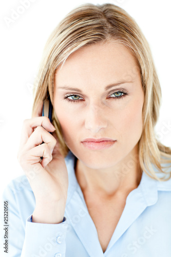 answering, background, businesswoman, mobile phone, communication, isolated, modern, phone, negative, technology, white, woman, mobile, talk, talking, depressed, dejected, downcast, sad, unhappy, bad, mood, adult, assertive, beautiful, business, captivating, caucasian, confident, copy space, elegant, female, person, pretty, self-assured, suit, using