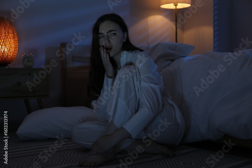 adult, anxiety, awake, background, bed, bedchamber, bedtime, caucasian, depressed, disorder, disturbed, exhausted, fatigue, female, floor, frustrated, cephalalgia, health, home, house, disease, indoor, insomnia, lamp, lifestyle, night, nightmare, pain, person, pillow, problem, room, sick, sleep, sleepless, sleepy, stress, stressed, suffering, sleepy, trouble, unhappy, unhealthy, unwell, upset, woman, worried, yawning, young