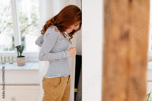 woman, frustration, head, wall, emotion, tension, stress, temper, angry, 20s, home, indoor, redhead, 20s, young, person, banging, fist, pressure, tantrum, emotional, copy space, furious, behaviour, irate, female, hair, 1, red