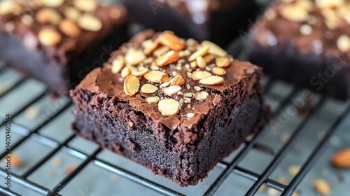 Fudgy brownies with almond flakes sprinkled on top, perfect for satisfying your sweet tooth