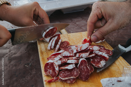 meat, food, cooking, knife, pig, hand, trim, raw, cutting, food, chef, steak, kitchen, dinner, fresh, red, frankfurter, eatery, butcher, cook, cookout, slice, preparation