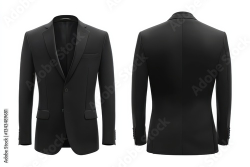 black, suit, menswear, tailored, display, fashion, clothing, style, elegant, attire, front, view, back, white, background, sharp, detail, design, clothes rack, presentation, upscale, classic, business, event, wear, formal, occasion, garment, tailoring, sophisticated, jacket, lapel, pant, polished, look, modern, chic