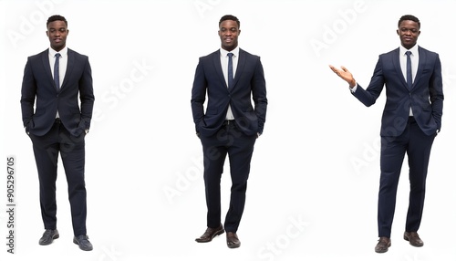 Full body photo of a walking black businessman. Full body photo PNG with transparent background precisely cut out with clipping path.