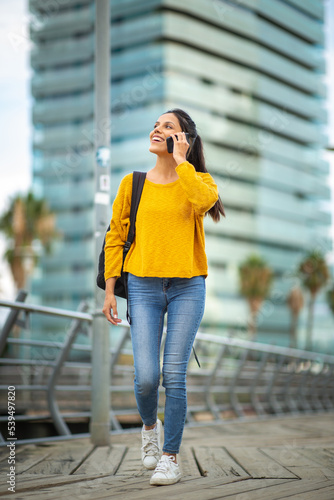 woman, adult, american, attractive, background, bag, beautiful, beauty, body, casual attire, caucasian, mobile phone, mobile phone, cheerful, city, cool, copy, expression, fashion, female, footpath, full, girl, hand, happy, hispanic, holding, lady, latin, length, life, lifestyle, looking, mobile, model, 1, path, people, person, phone, portrait, smile, space, style, stylish, talking, phone, trendy, walking