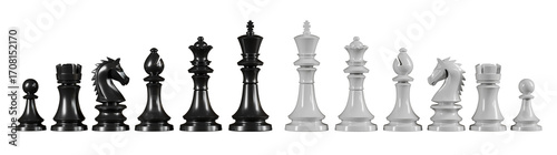 chess, chess piece, piece, all, isolated, transparent, black, white, king, queen, pawn, knight, bishop, rook, three-dimensional, concept, board game, game, sport, piece, model