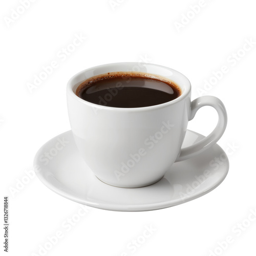 Full Cup of Hot Black Coffee in White Ceramic Mug with Saucer