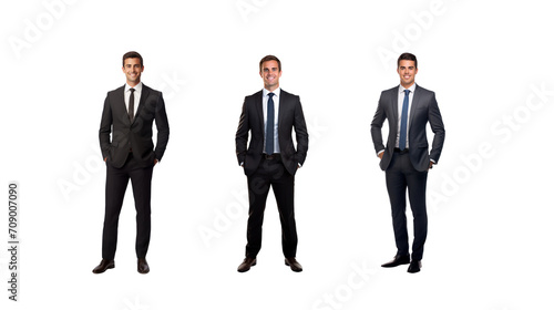 Full image of a businessman standing and smiling, looking at the camera, on a transparent background PNG