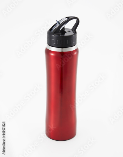 Full length red waterbottle. Isolated on white background.