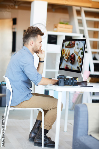 using, computer, editing, software, man, male, photographer, photo, photo, studio, set, work, occupation, food, food photography, business, blog, web log, advert, advertisement, production, freelance, self employed, design, hairdresser, creative, sitting, table, desk