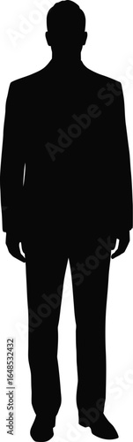 silhouette, man, businessman, suit, full-length, standing, male, adult, figure, shape, isolated, vector, illustration, black, white, formal, professional, executive, corporate, job, work, office, person, human, body, clothing, style, fashion, elegance, modern, simple, minimalist, design element, cut-out, graphic, image, icon, symbol, clip art, representation, outline, blank