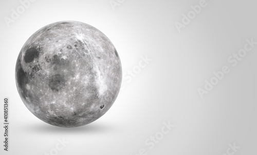 Full moon isolated on white background with space for text, 3d illustration. Elements of this image furnished by NASA.