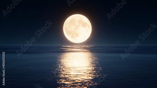 Full Moon over the Ocean: A breathtaking night scene of a luminous full moon casting its ethereal glow across a tranquil sea. The image evokes a sense of serenity and mystery.