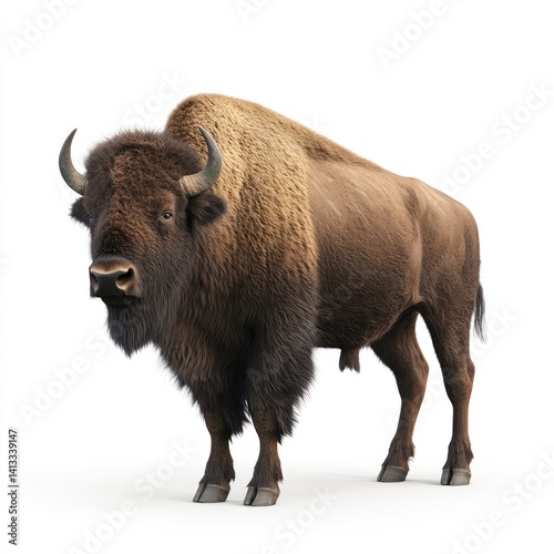 cute, sticker, three-dimensional, rendering, bison, mammal, wildlife, animal, plain, portrait, large, brown, fur, hair, mammalian, mammal, herbivore, grazing, hoofed, hoof, horn, antler, conservation, endangered, species, habitat, ecology, ecosystem, fauna, nature, protection, preservation, photo, image, digital, isolated, white, background, front view