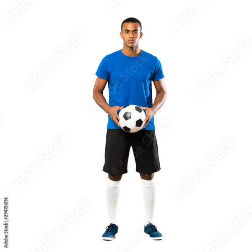 african, american, athlete, athletic, ball, body, competition, football, full, full-length, game, guy, photogenic, isolated, leisure, male, man, man, model, 1, people, person, player, playing, professional, slim, soccer, sport, sport, activewear, racked, studio, training, white, young, youth