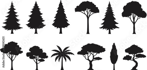 tree, silhouette, vector, nature, leaf, palm, illustration, pine, plant, black, forest, oak, tree, birch, tree branch, flower, autumn, set, outline, design, pattern, collection, park, tropical, leaf
