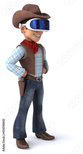 Fun 3D Illustration of a cowboy with a VR Helmet