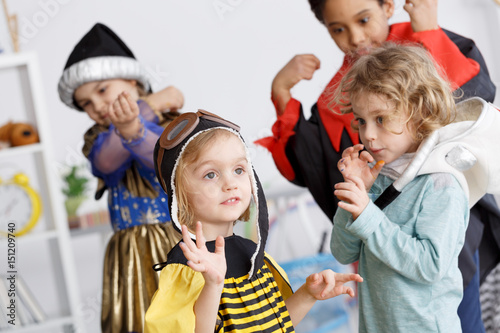 children, colourful, costume, fun, kindergarten, preschool, dressed up, elementary, teacher, school, playroom, education, classroom, girl, boy, class, kindergartner, group, children, play, toddler, day care, game, activity, childcare center, woman, creative, children, astronaut, bee, class, party, little, young, colours, horizontal